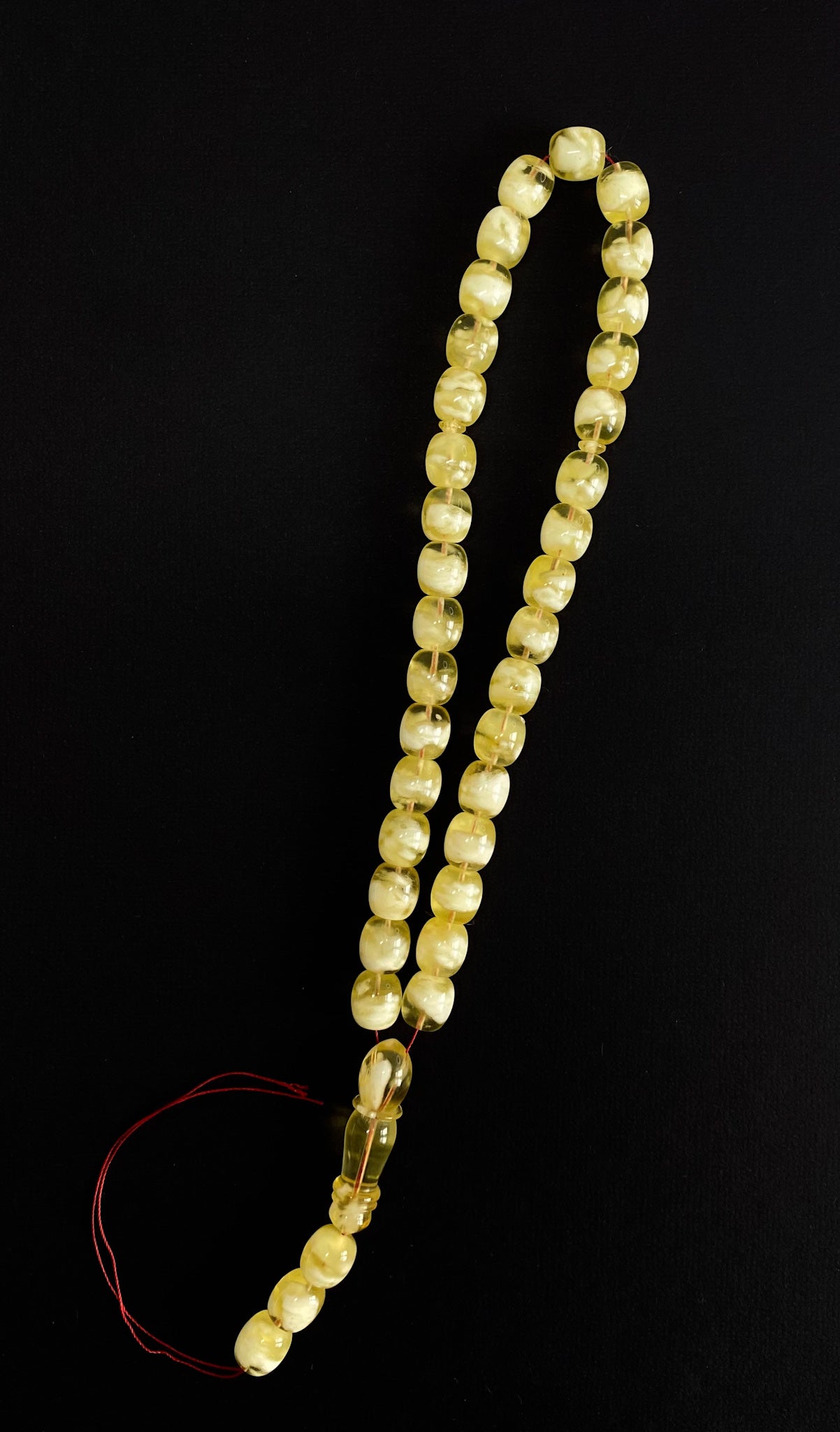 Certified Baltic Amber Tesbih | Premium Opaque Light Yellow Succinite Prayer Beads | 58.47 g Gebetskette